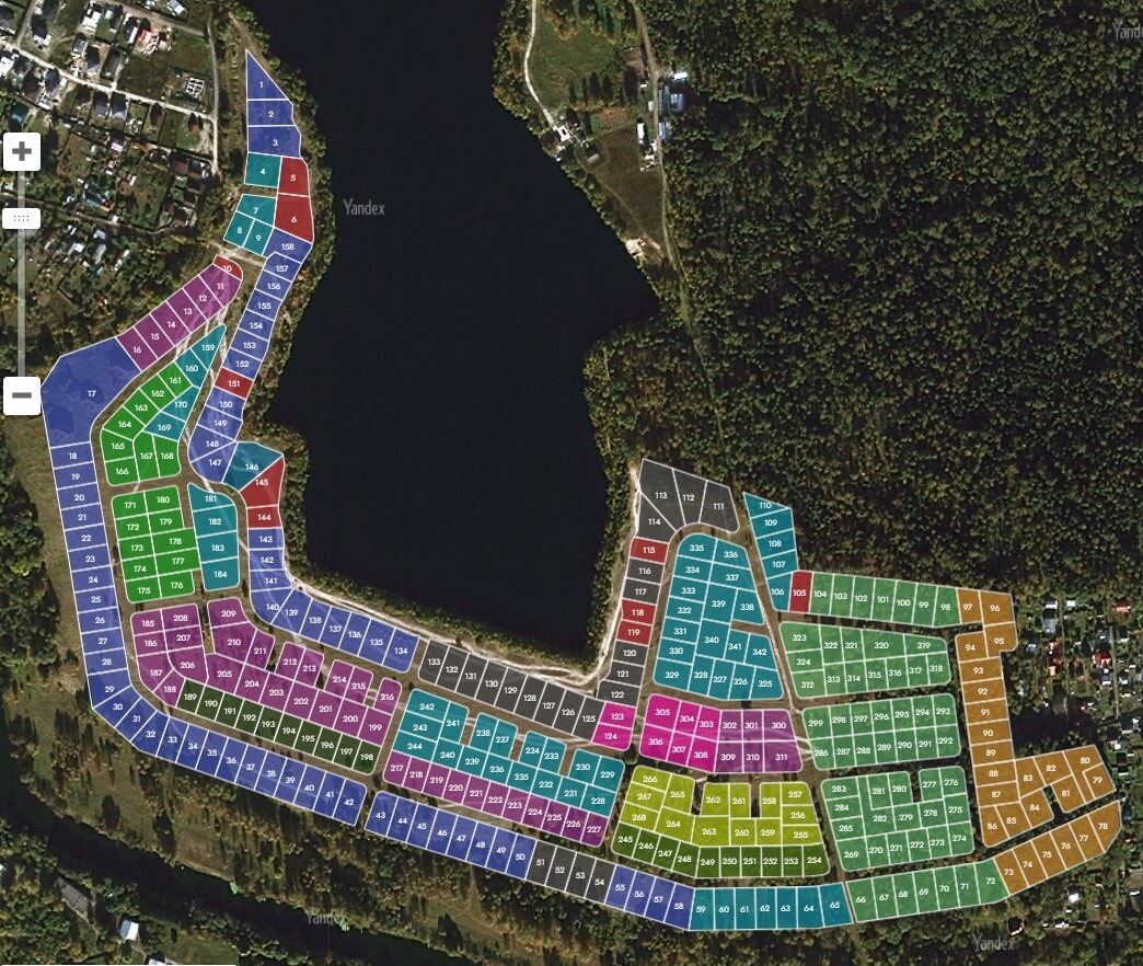 Поселок большой, строительство ведется в несколько этапов. Землевладения предлагаются застройщиком без
